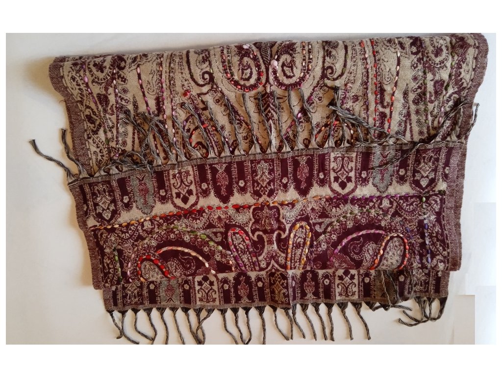 Imitace vařené vlny. Vařená vlna, známá také pod názvem "plstěná vlna" je plstěním speciálně upravená vlna. Šály které zde nabízíme jsou její imitací. Přesto mají příjemné vlastnosti. Materiál nekouše, je teplý. Možno použít jako šál, deku, nebo ozdobný přehoz v domácnosti, navíc je na rozdíl od plstěné vlny cenově dostupný. Rozměry: 65 x 210 cm
