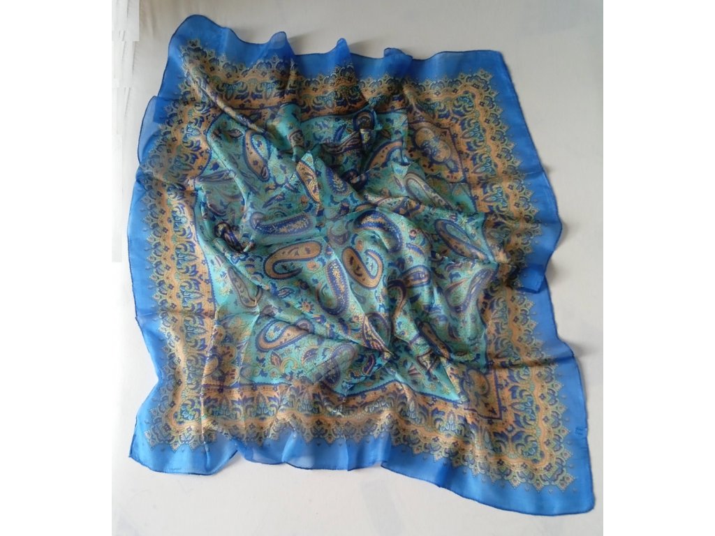 Zajímavý čtvercový hedvábný šátek, který vás rozzáří. 100% hedvábí. Rozměry 95 x 95 cm. Vhodný do kabátu, nebo i jako doplněk ke společenským šatům. Na běžné nošení i na slavnostní chvíle. Velmi tenký, příjemný na dotek, v létě chladí v zimě hřeje. Více o hedvábí se dočtete u nás na blogu.